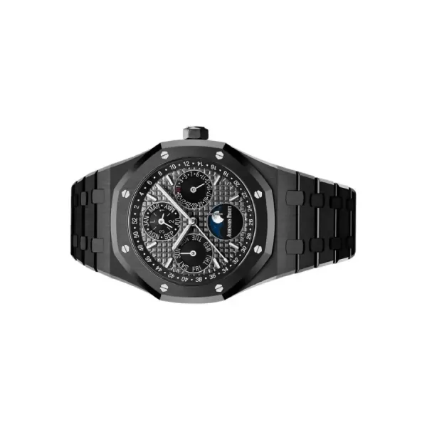 The Audemars Piguet Royal Oak Perpetual Calendar 26579CE.OO.1225CE.01 Replica is a high quality watch. It features a black ceramic case with a 904L stainless steel bezel and a sapphire crystal. The movement is an automatic AP 5134 with a power reserve of 60 hours and a precision of (-3/+3 sec/day) within COSC certification limits. The dial is black with stick and dot indices and 904L stainless steel stick hands.