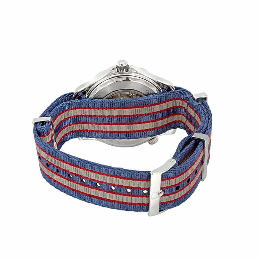 The Omega Seamaster Planet Ocean 215.32.46.51.01.001 Black Dial Replica is a high quality watch. It features a 904L stainless steel case and bezel, with a blue and red bezel color. The crystal is made of sapphire, and the case is 41.00 mm in size. The bracelet is made of fabric, with adjustable links and a 904L stainless steel push button folding clasp. The dial is white with dot indices and 904L stainless steel stick hour markers.