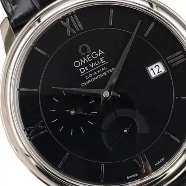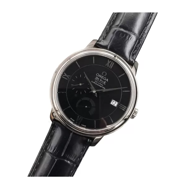 Paired with a sleek black leather strap, the De Ville replica maintains a sophisticated aesthetic that suits both business and casual settings. The strap includes adjustable links and a 904L stainless steel folding clasp, combining security with comfort.