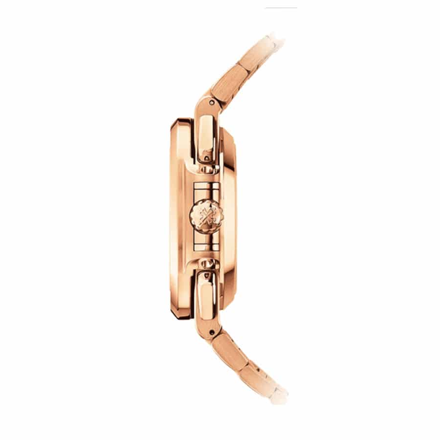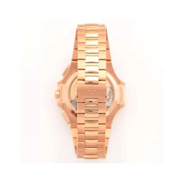 The Patek Philippe Nautilus Brown Dial Replica is a luxurious watch with a 904L stainless steel case and rose gold bezel. The 40.50 mm case is 12.2 mm thick and features a sapphire crystal. The black dial features stick and dot indices with 904L stainless steel hour markers and hands. The automatic movement, caliber RMAC3, has a power reserve of 60 hours and is accurate to within -3/+3 seconds per day, meeting COSC certification limits. The adjustable 904L stainless steel bracelet has a double-fold clasp in rose gold.