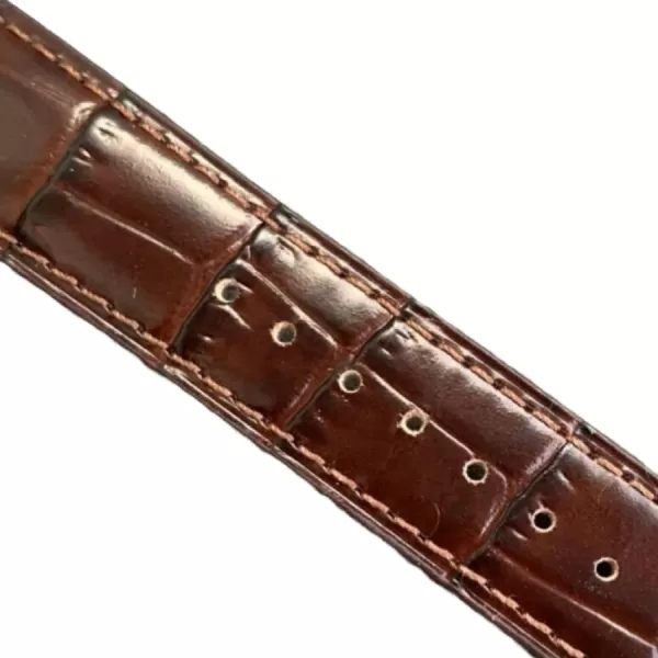 A brown leather strap paired with a gold-tone 904L stainless steel fold clasp ensures both comfort and style. The adjustable links mirror the genuine Patek Philippe design, offering a custom fit for all wrist sizes.