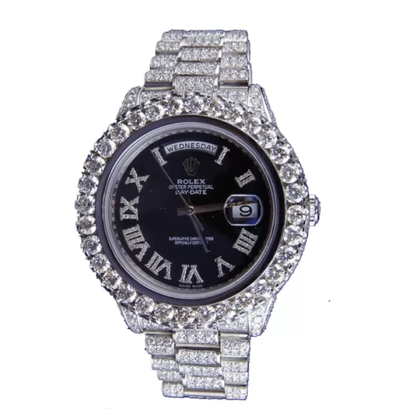 Introducing the Rolex Day-Date 218239 Fully Iced Out Replica, a masterpiece that captures the essence of luxury and precision, bringing the iconic allure of Rolex to your wrist. This stunning rolex replica watch elevates your style quotient, blending classical elegance with modern sophistication. Imagine the radiant sparkle reflecting off its fully iced-out stainless steel case as it dazzles under the light, creating an aura of undeniable grandeur.