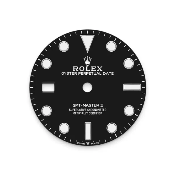 The 40 mm case is crafted from premium 904L stainless steel and paired with the robust Oyster bracelet, ensuring durability, comfort, and everyday wearability. Sapphire crystal protection and a secure Oyster clasp complete the solid construction, while the unique crown position sets this model apart from traditional GMT references.