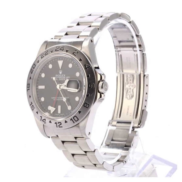 The 40 mm case is made from premium 904L stainless steel, paired with a matching Oyster bracelet designed for durability and comfort in all conditions. Sapphire crystal protection and a secure folding clasp complete the classic Explorer II build, mirroring the genuine model in every detail.