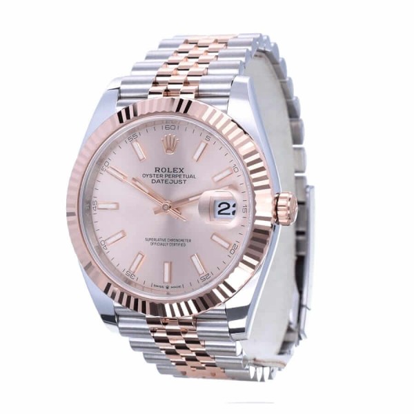 Experience the timeless elegance and intricate craftsmanship of the Rolex Datejust 126331-0010 Sundust Dial Replica. This captivating timepiece is designed to exhibit an aura of sophistication that is sure to captivate onlookers. The Datejust 41 model boasts a resilient 904L stainless steel case, paired seamlessly with a luxurious rose gold and steel Jubilee bracelet, creating a stunning contrast that glistens in the light and exudes opulence.