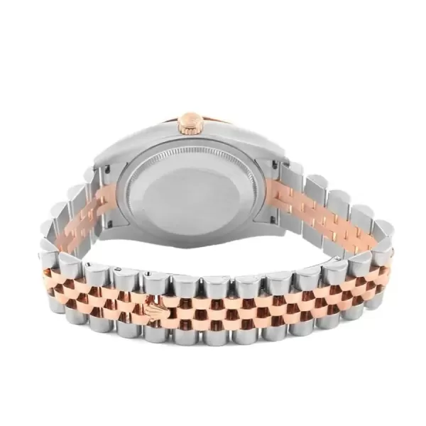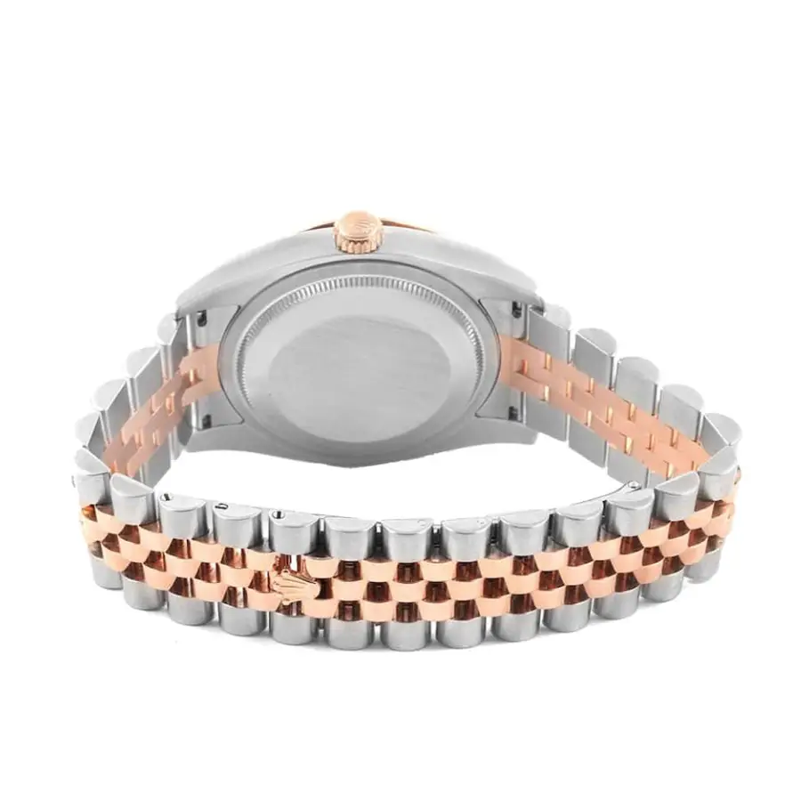 The 41.00 mm dial size straddles the line between bold and elegant, making it an apt choice for any wrist. The 904L stainless steel Jubilee bracelet, accentuated with adjustable links, offers not just unmatched comfort but also an air of flexible luxury. Its fold clasp, inlaid with a blend of rose gold and steel, ensures that tailored fit that wraps snugly around your wrist. Envision the soft glint of the bracelet catching the light, adding a touch of grandeur to each movement.
