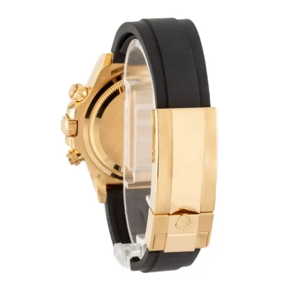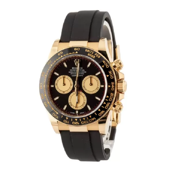 The Rolex Daytona Paul Newman 126518LN-0004 Replica is a sophisticated timepiece that perfectly balances timeless elegance and reliable functionality. Featuring a 40 mm yellow gold case, this watch showcases a striking black dial with contrasting gold subdials, embodying vintage charm while maintaining Rolex’s signature aesthetic. Its black Cerachrom bezel with a tachymeter scale enhances the design, making it suitable for both professional racing and everyday elegance.