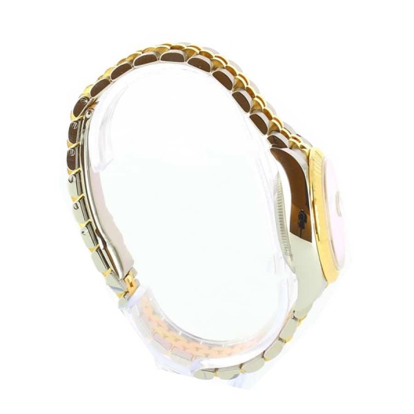 The Rolex Datejust Diamond Dial Replica features a mesmerizing mother-of-pearl dial adorned with gem-set hour markers, complemented by elegant stick hands made from 904L stainless steel. The Jubilee bracelet, also constructed from durable 904L stainless steel in a radiant yellow gold color, offers adjustable links for a perfect fit on any wrist. The fold clasp ensures security and ease of wear. Equipped with chronometer-certified automatic movement caliber 2236, this timepiece delivers exceptional accuracy and boasts a power reserve of approximately 60 hours. With its 30-meter water resistance, this replica watch is designed to withstand the demands of everyday wear. Backed by a full 2-year international warranty, the Rolex Datejust Diamond Dial Replica is the epitome of excellence, capturing the essence of luxury and style in every detail.