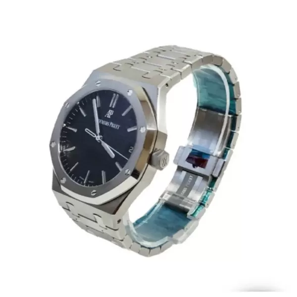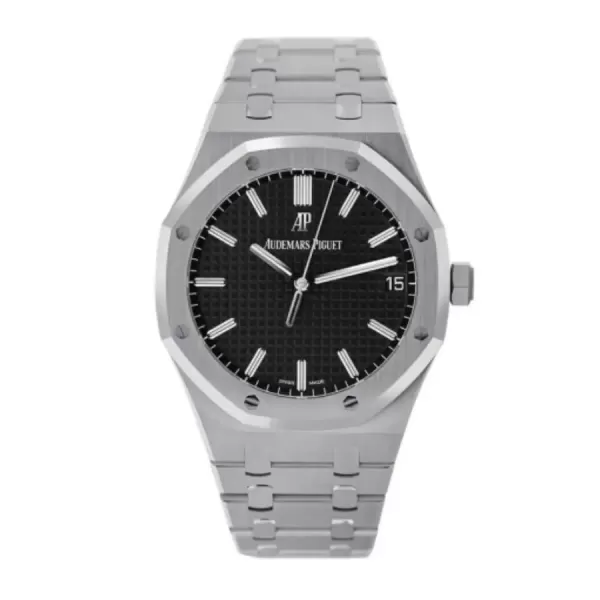 The 41 mm case is crafted from high-grade 904L stainless steel, showcasing the signature brushed and polished Royal Oak finishing. Paired with the integrated stainless-steel bracelet and AP folding clasp, the watch provides outstanding comfort, durability, and unmistakable Royal Oak presence. Sapphire crystal protection ensures long-lasting clarity and scratch resistance.
