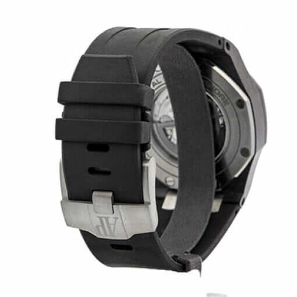 The Audemars Piguet Royal Oak 26400.AU.OO.A002CA.01 replica is a luxury watch. It features a 904L stainless steel case and bezel, both in black, with a silver bezel. The 44.00 mm case is fitted with a sapphire crystal and is powered by an automatic AP 1068 movement with a 60-hour power reserve and a precision of -3/+3 sec/day within COSC certification limits. The black rubber bracelet is adjustable for all sizes and is secured with a 904L stainless steel belt buckle.The black dial features a Grande Tapisserie pattern with ceramic stick and dot indices. The 904L stainless steel stick hands complete the look. The watch is water-resistant up to 30m and comes with a full 2-year international warranty. It is a perfect 1:1 clone of the original, with the same serial numbers, markings, thickness, and movement. Your jeweler won’t be able to tell the difference!