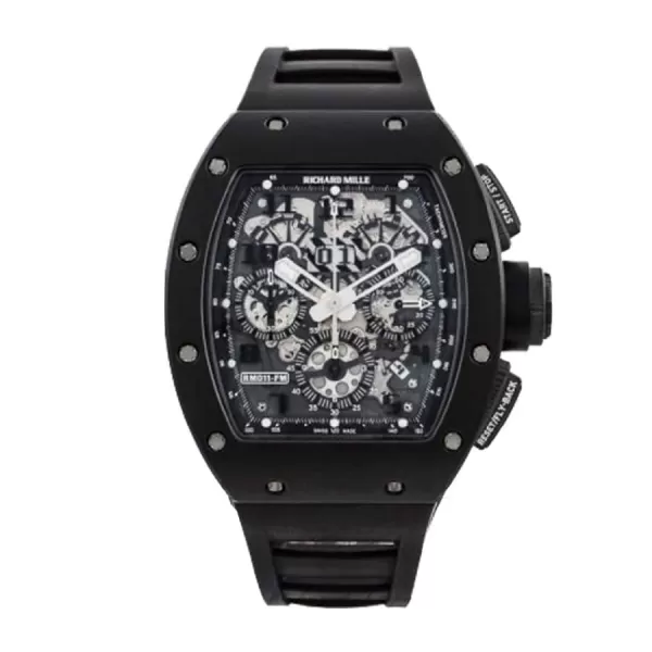 The Richard Mille RM-011 Black Phantom Carbon Fiber Skeleton Dial Replica is a perfect replica of the original watch. It has the same arrangeable serial numbers and cards, font, punto, and finishing for writings and markings, thickness and size, and powerful movement and caliber. It is impossible to tell the difference between the original and the replica. This is the perfect watch for anyone looking for a luxurious watch.