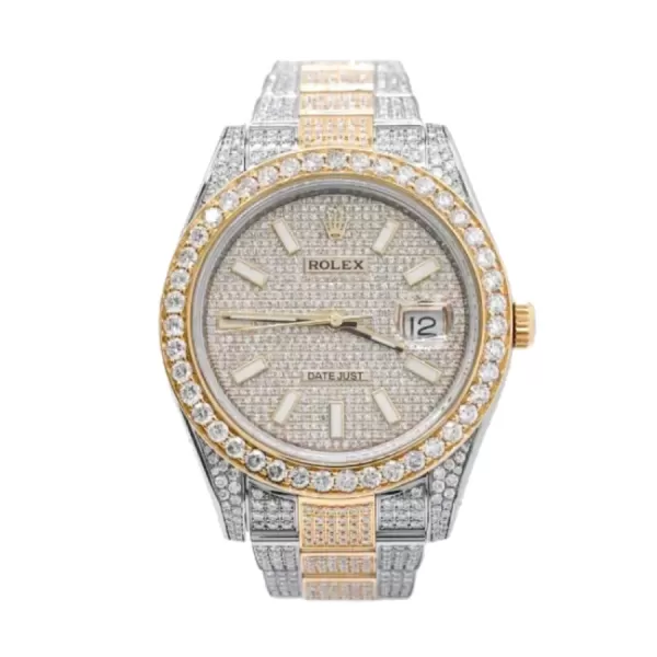 The dial, available in a range of colors including champagne, black, or white, is adorned with luminescent hour markers or Roman numerals for excellent readability. The iconic date display at 3 o’clock is magnified by a Cyclops lens, enhancing visibility and practicality.
