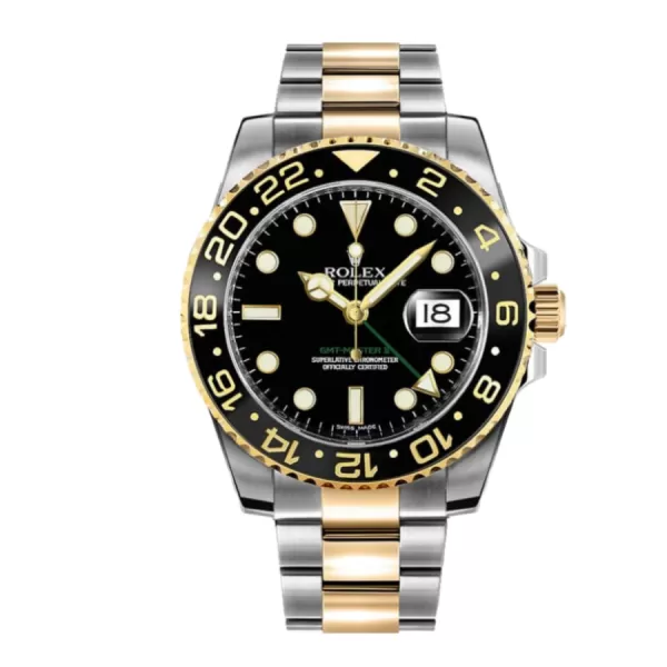 The Rolex GMT-Master II 116713 Two Tone Black Dial Oyster Replica is a luxurious watch that is sure to impress. It features a 904L stainless steel case with a black bezel and sapphire crystal. The movement is an automatic caliber 3186 with a power reserve of 60 hours and precision of (-3/+3 sec/day) within COSC certification limits. The bracelet is a 904L stainless steel oyster with adjustable links and a folding clasp.
